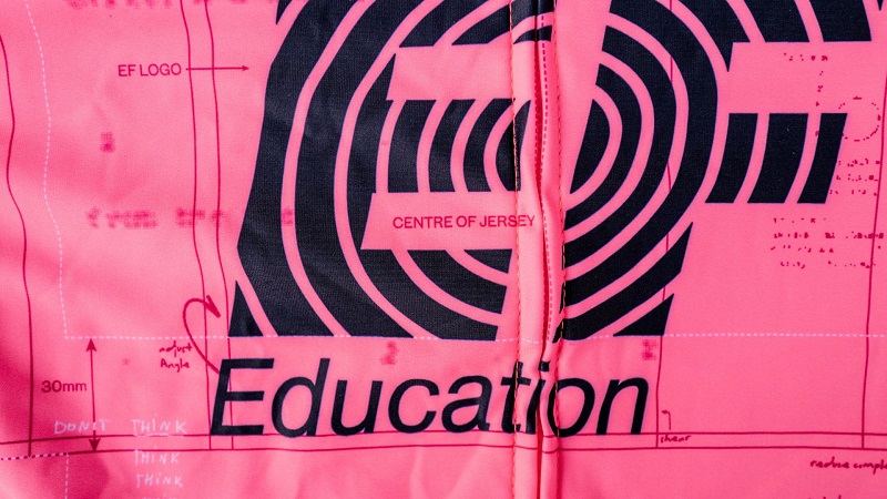 You might remember that EF Pro Cycling went nuts with their kit at the Giro d’Italia last year. In order to remedy a colour clash between the race leader’s Pink Jersey and their own pink/blue Rapha swirl they teamed up with skate brand Palace and went to town. They produced an ‘away kit’ with flames on the sleeve; weird optical magic eye colour scheme; a duck…they did not hold back.